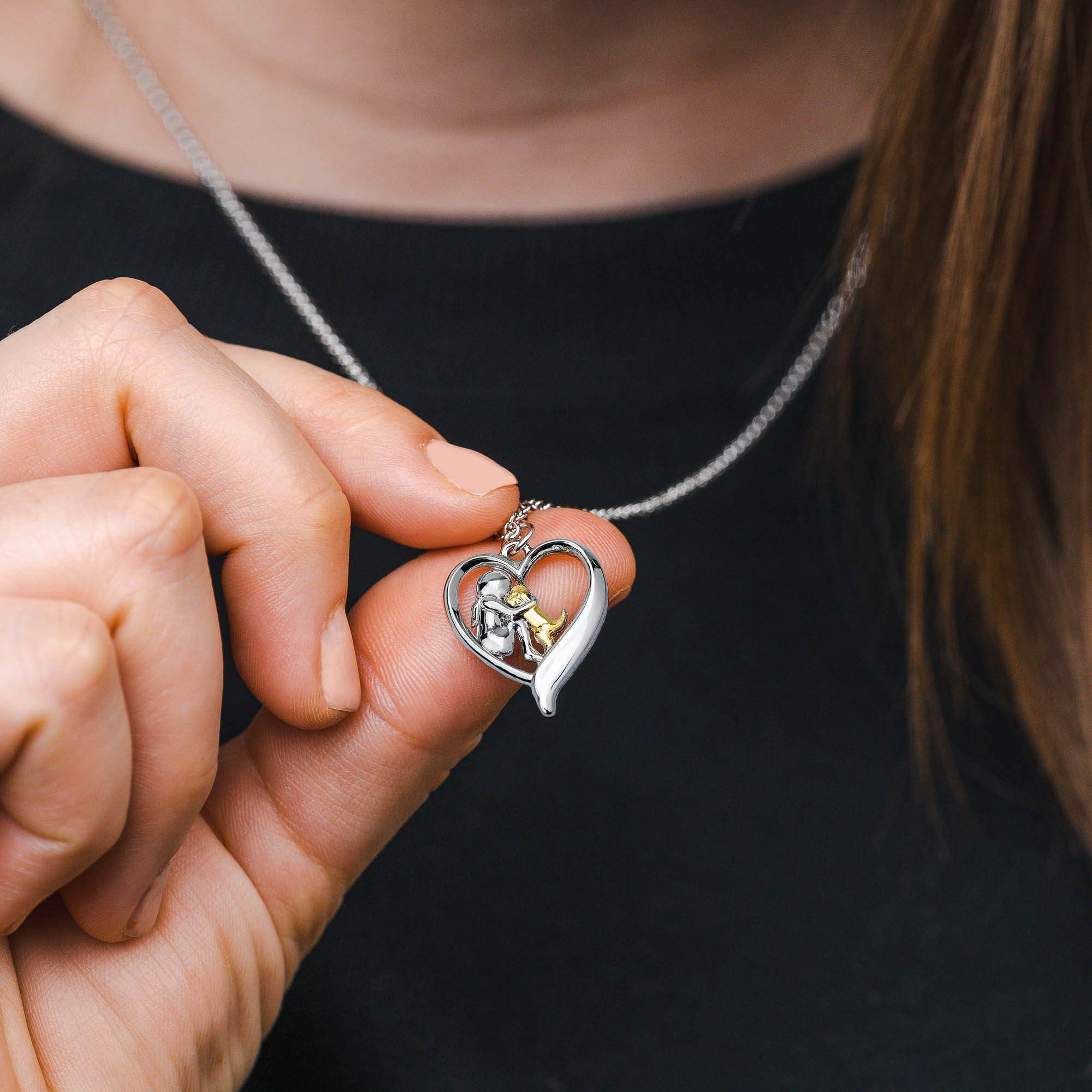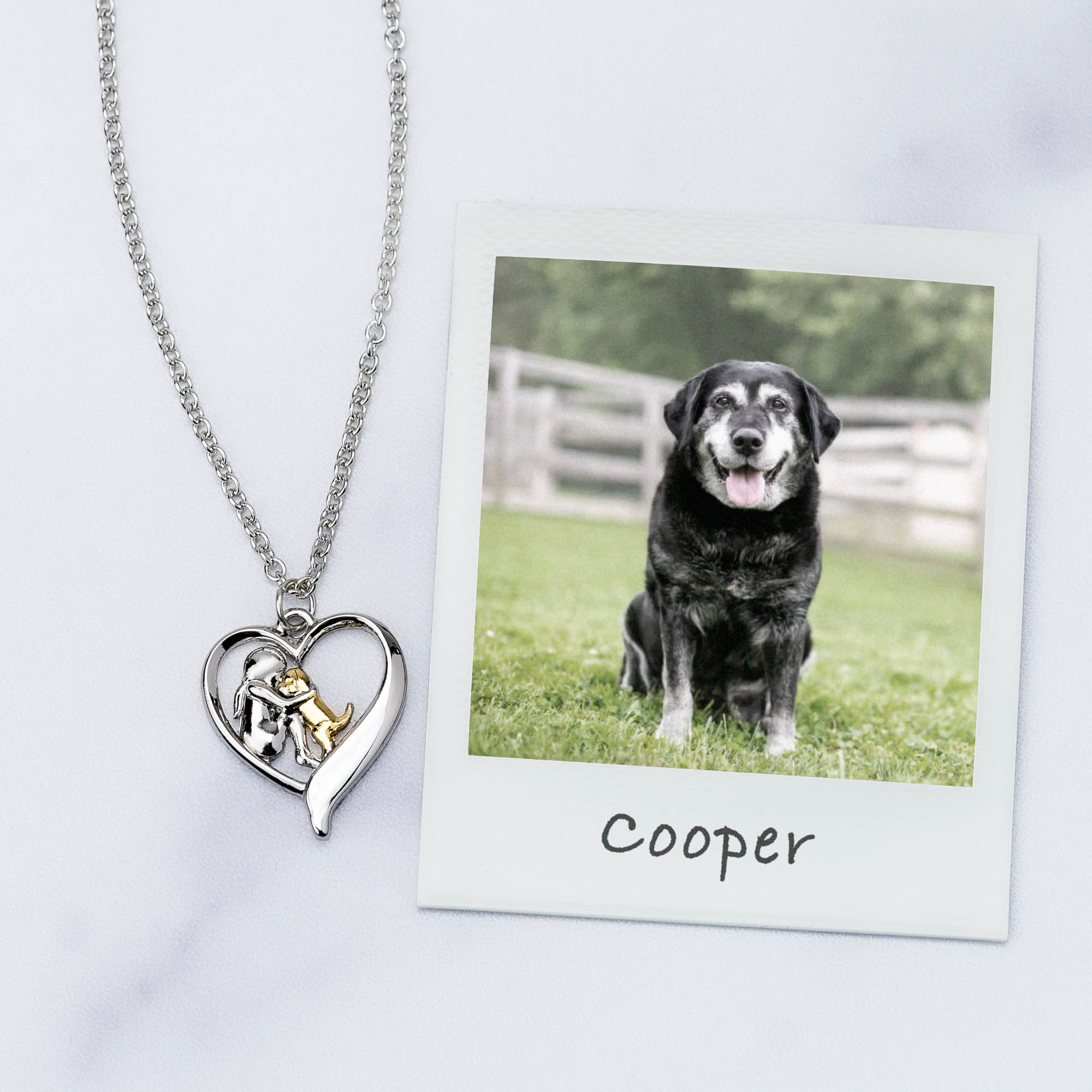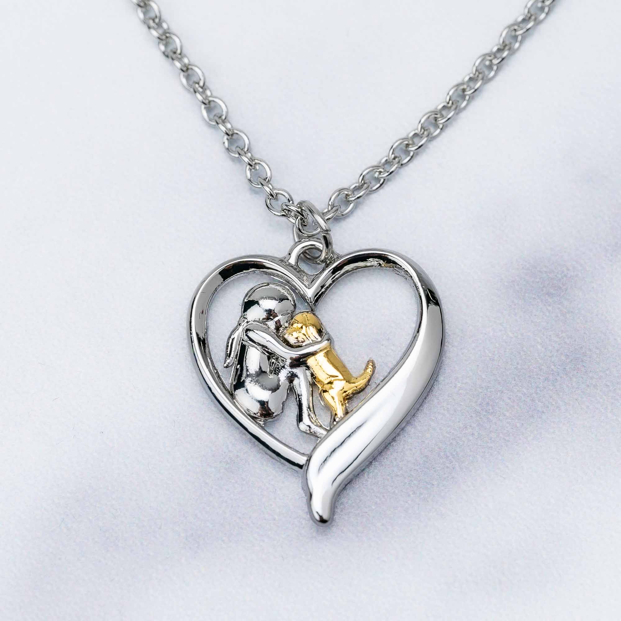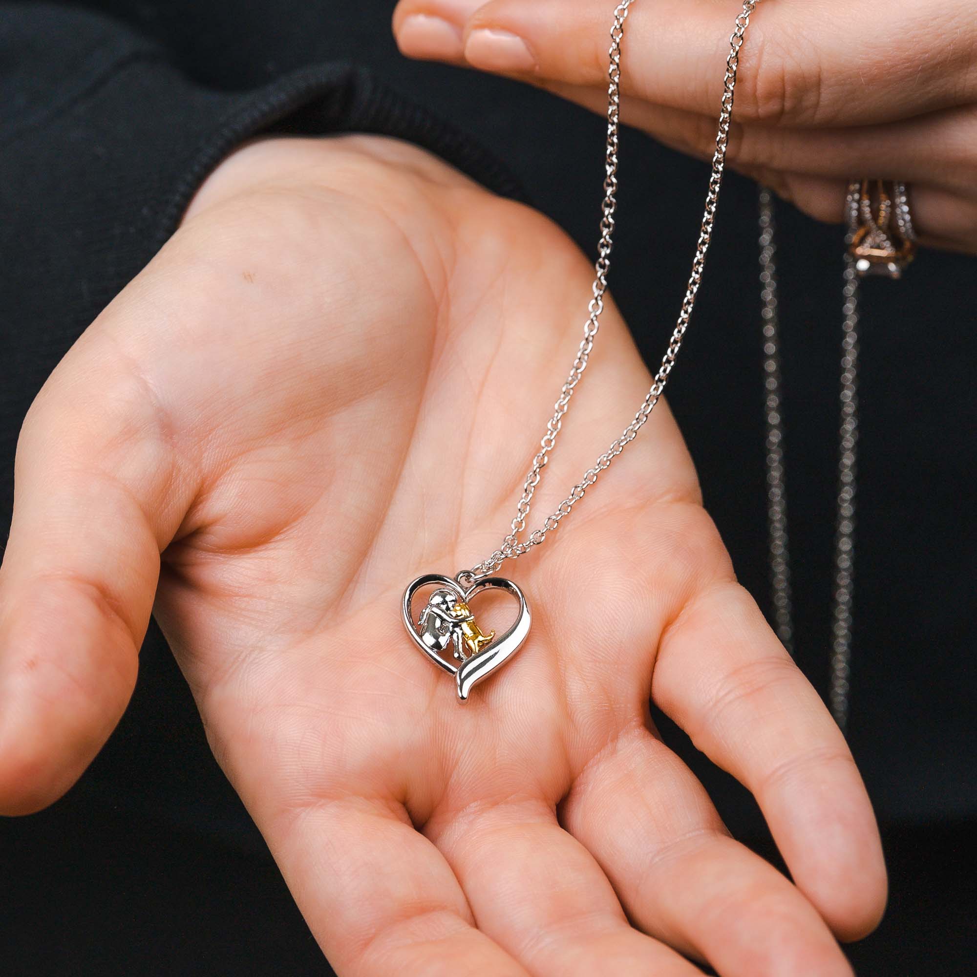 - Inspired by Love - This beautiful necklace celebrates the special connection between you and your dog with a detailed pendant of a dog mom and her pup sharing a moment of love inside a heart.