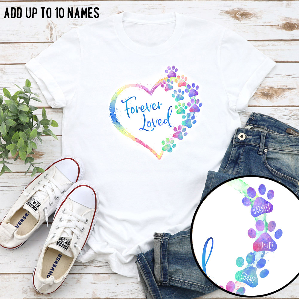 Forever Loved Dog Memorial Personalized (Up to 10 Dog Names) Standard Tee – White