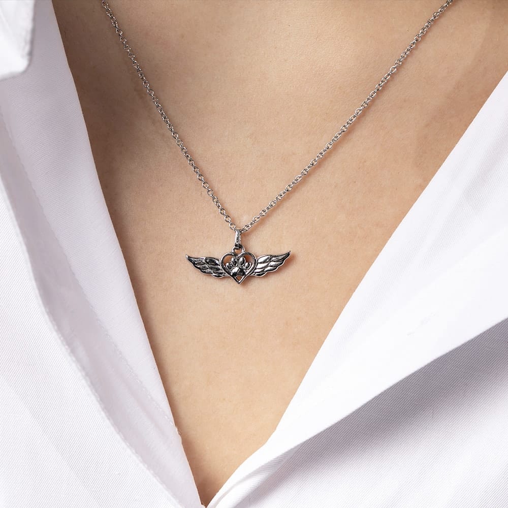 Inspired by the love for dogs, this Dog Paw Angel Wing charm necklace was designed for you and other dog lovers who understand the special bond and the joy our furbabies bring to our lives.