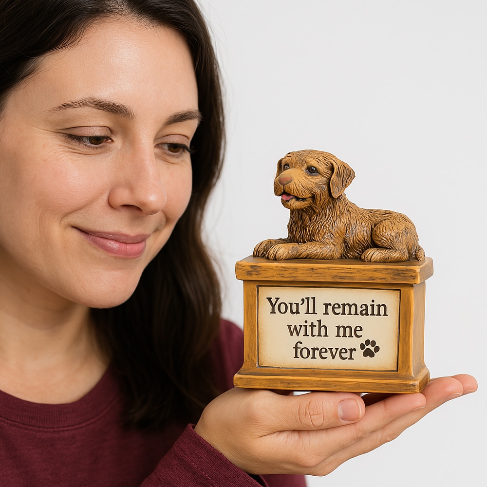 - Thoughtful Design: Sculpted resin box with a lifelike dog figurine and a comforting inscription.